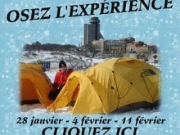 C’est le retour des nuits d’hiver sur les plaines d’Abraham dans le cadre du Carnaval de Québec. Les places sont limitées. Que vous m’ayez jamais fait du camping d’hiver ou soyez un habitué, osez l’expérience!! détails des forfaits sur www.horizon5.ca Disponibles à tous les samedis du Carnaval de Québec. Les mardis et jeudis, des forfaits spéciaux sont aussi offerts.